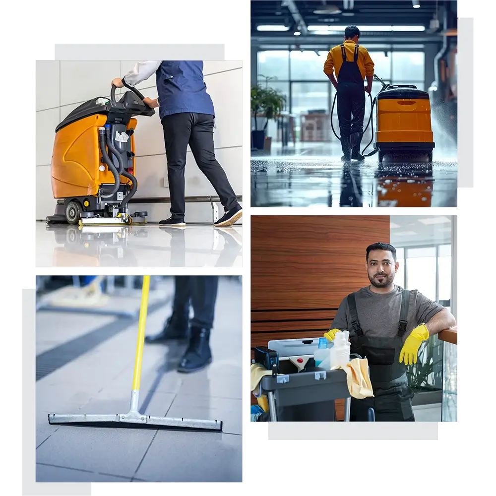 Utilizăm echipamente profesionale moderne, inclusiv aspiratoare industriale, mașini de spălat pardoseli și alte unelte specializate pentru rezultate de înaltă calitate.